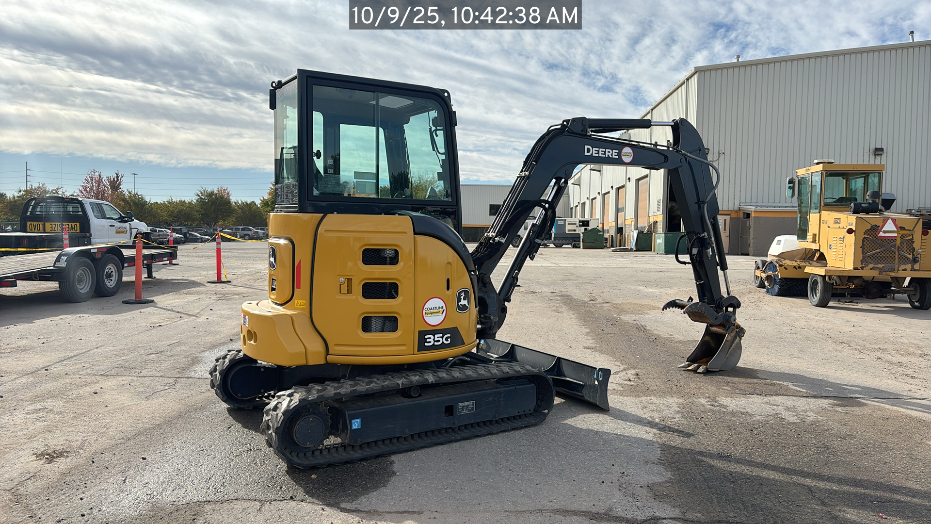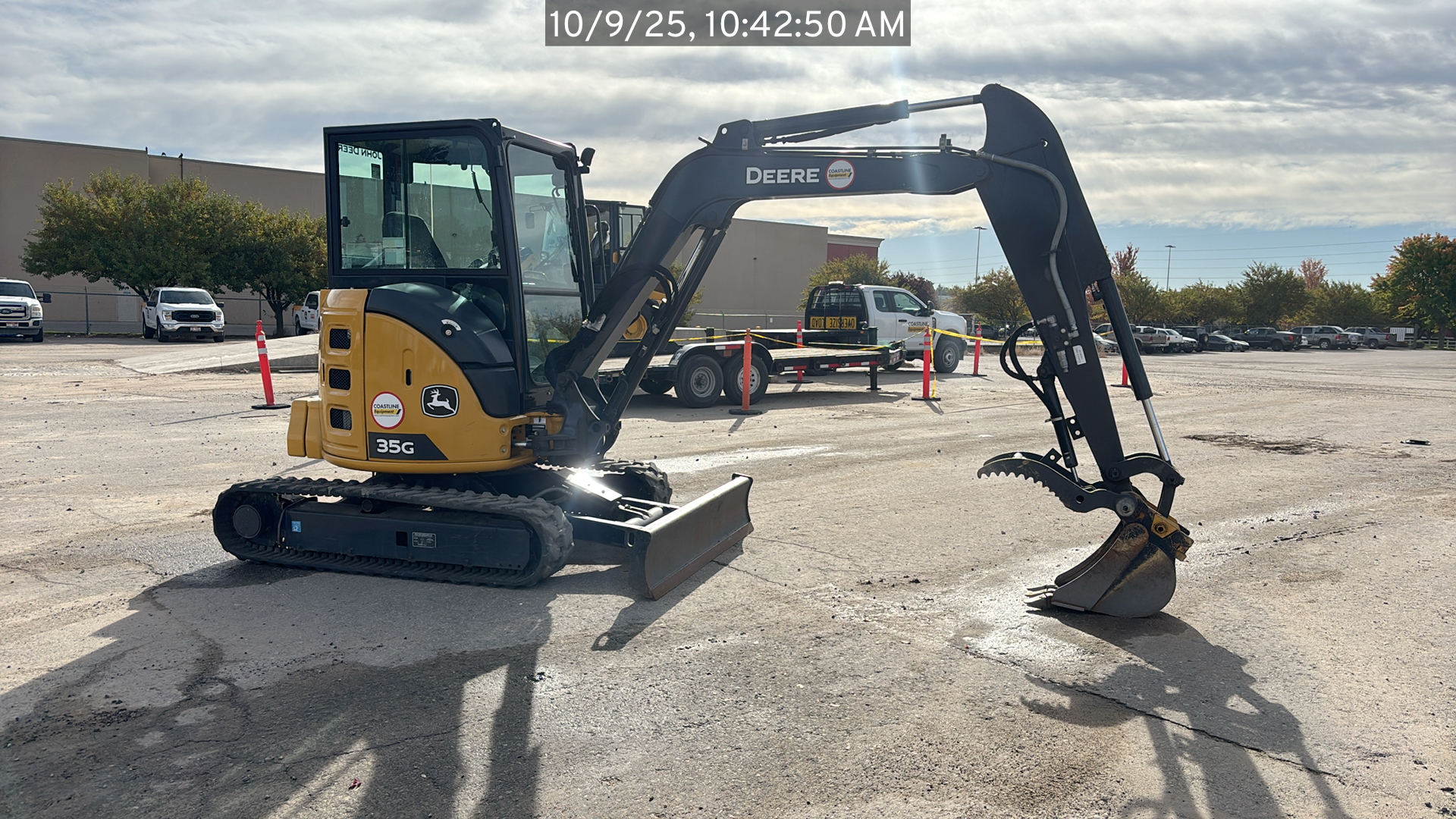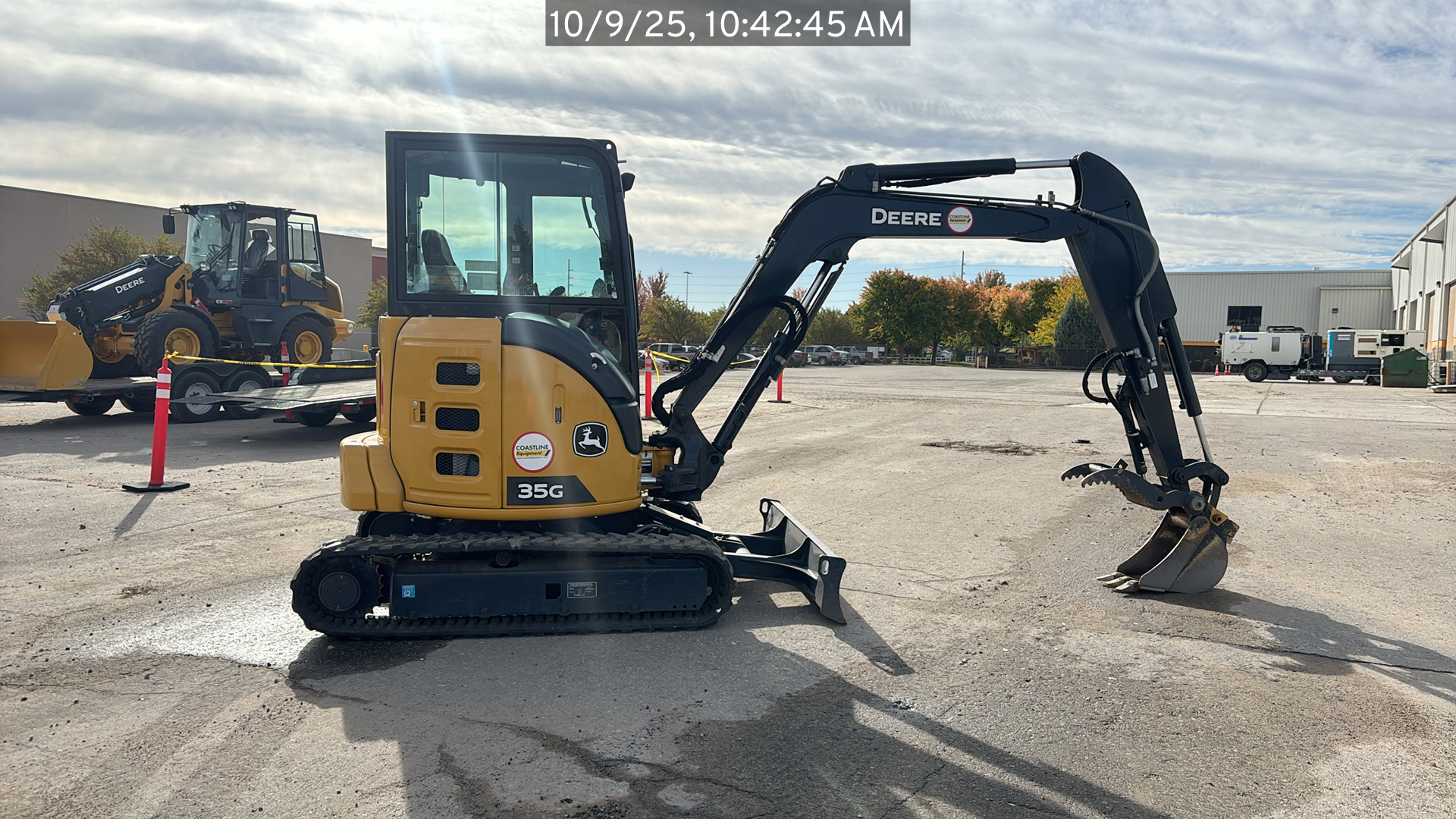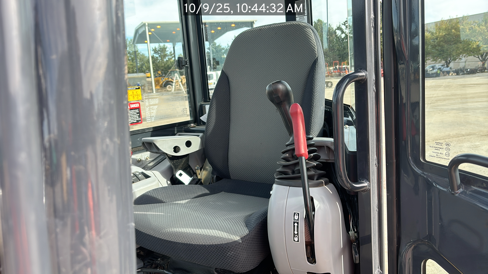 ROPS, Cab w/ AC, Cntrl Pattern Select, Pilot Controls; Long Arm; Rubber Tracks; 12" Pads; Aux Hydraulics, Blade, Coupler, Hydraulic Thumb; w/ Blade