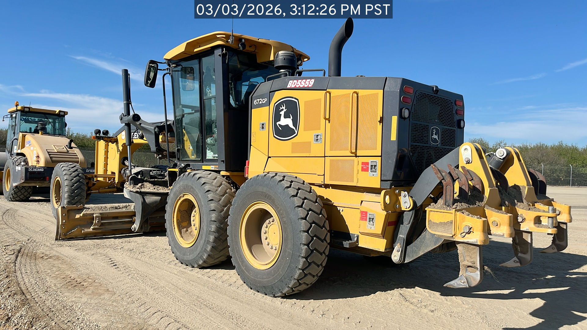 ROPS, Cab w/ AC, EH Fingertip Controls, Smart Grade; 4.27 m (14 ft.) Blade; 17.50 Tires; All Wheel Drive; Push Block, Ripper/Scarifier