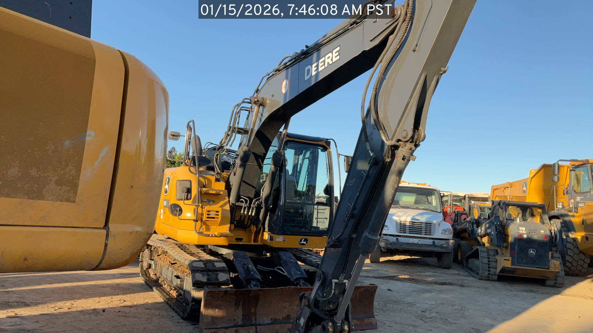 ROPS, Cab w/ AC, Cntrl Pattern Select; Medium-Long Arm; Standard Boom; Standard Track, Rubber Tracks; 20" Pads; Aux Hydraulics, Blade, Coupler